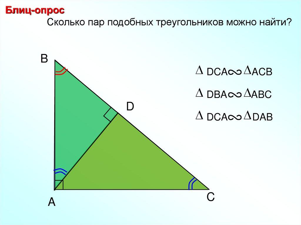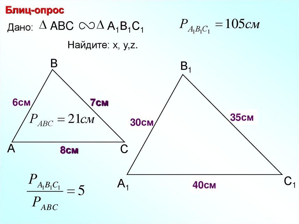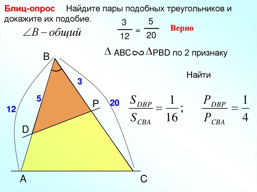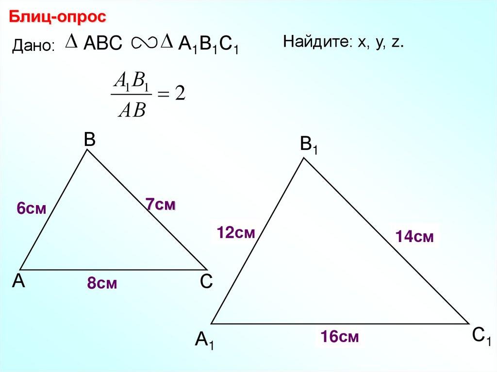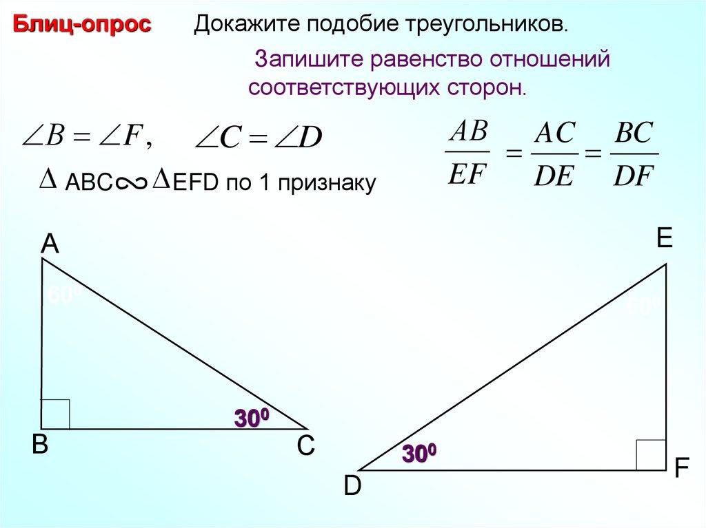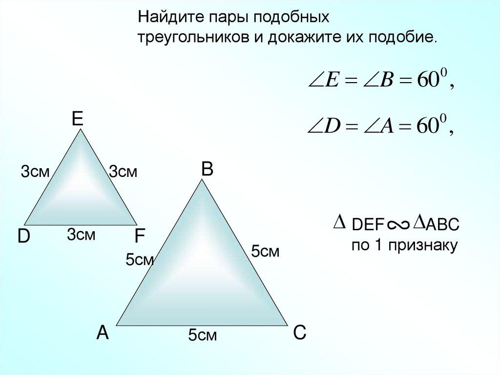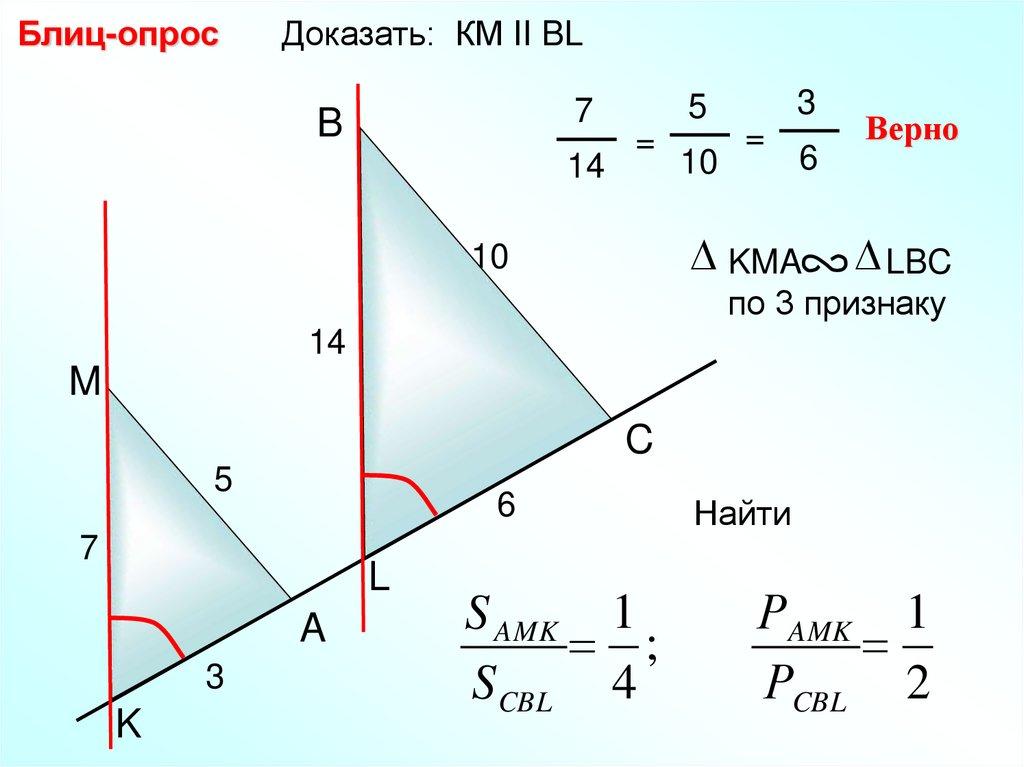 Блиц-опрос Найдите пары подобных треугольников идокажите их подобие.