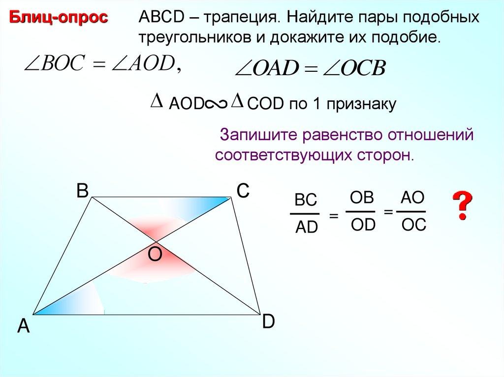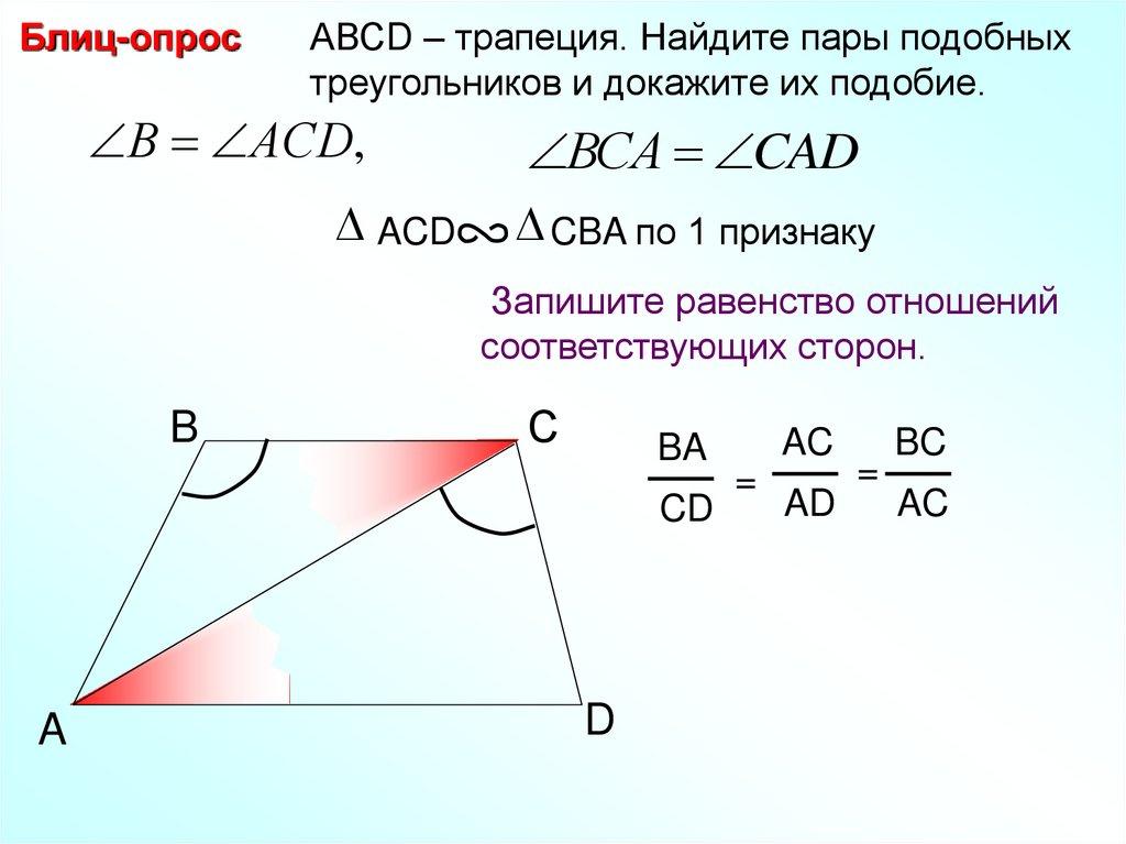 Блиц-опросТрапеция АDPC. Найдите пары подобных