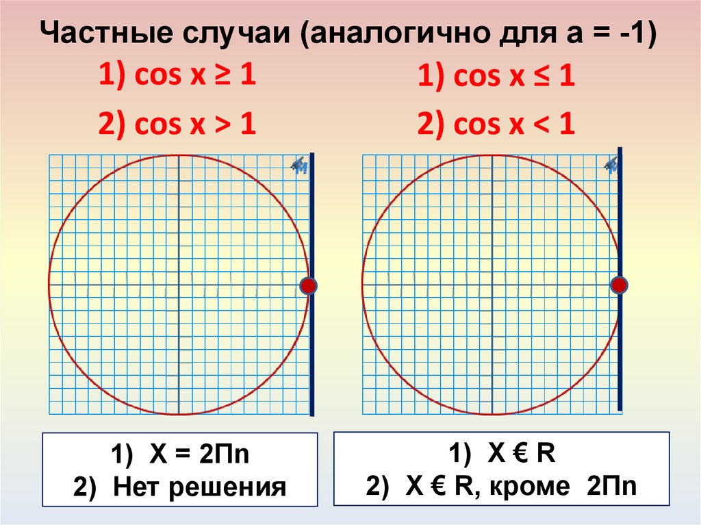Частные случаи (аналогично для а = -1)1) cos x ≥ 1