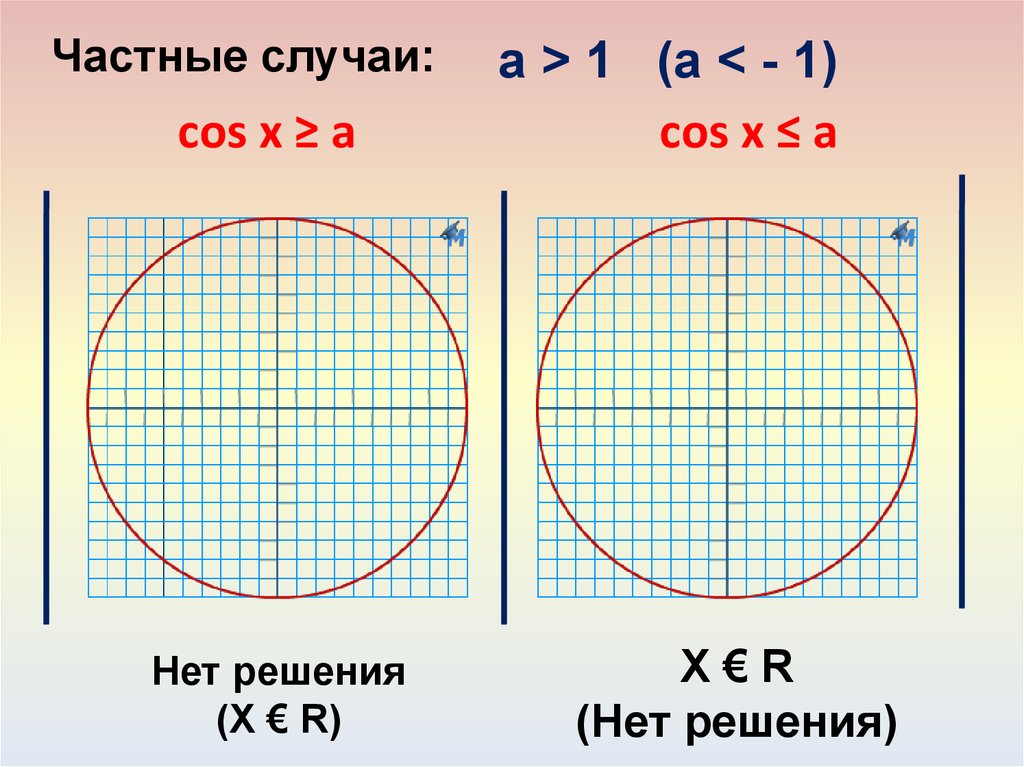 Частные случаи:cos x ≥ a