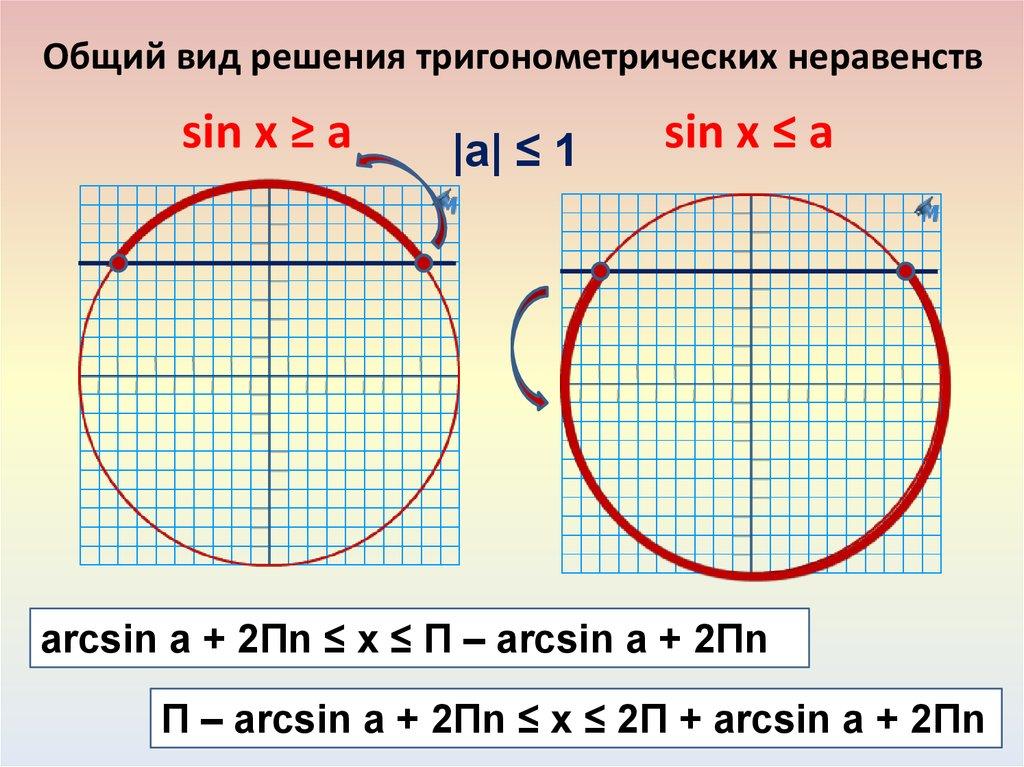 Общий вид решения тригонометрических неравенствsin x ≥ a