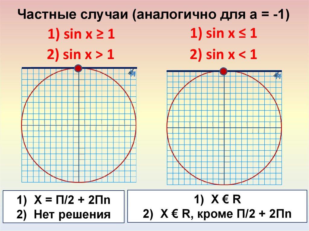 Частные случаи (аналогично для а = -1)1) sin x ≥ 1