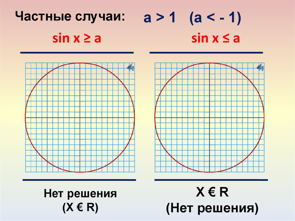 Частные случаи:sin x ≥ a