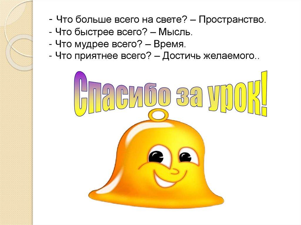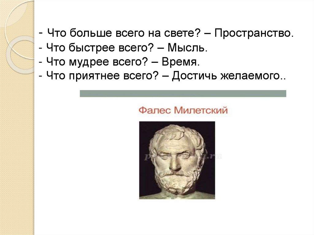 - Что больше всего на свете? – Пространство.- Что быстрее всего? – Мысль.