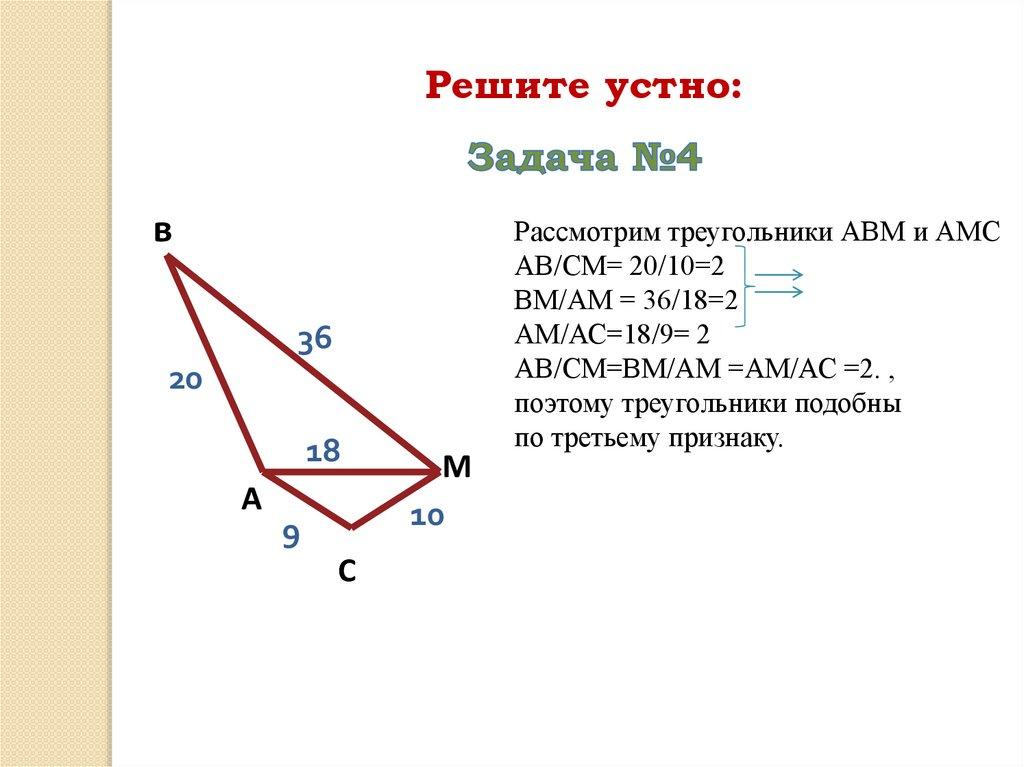 Решение задачи №4∆АВС ~ ∆DCA по двум