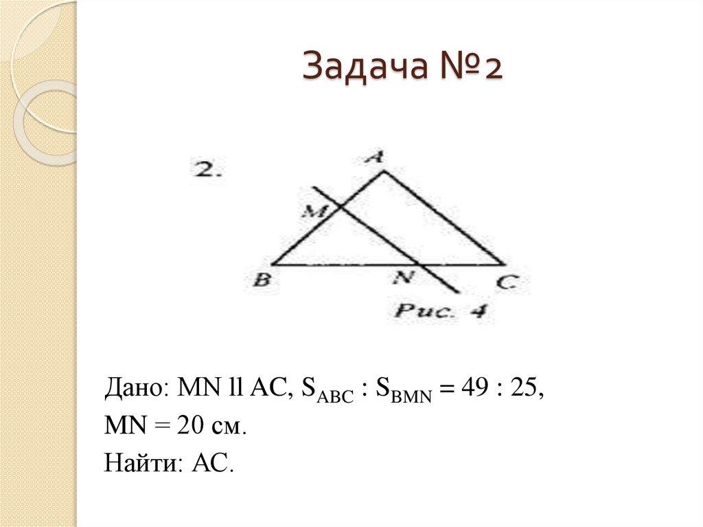 Задача №2Дано: MN ll AC, SABC : SBMN = 49 : 25,