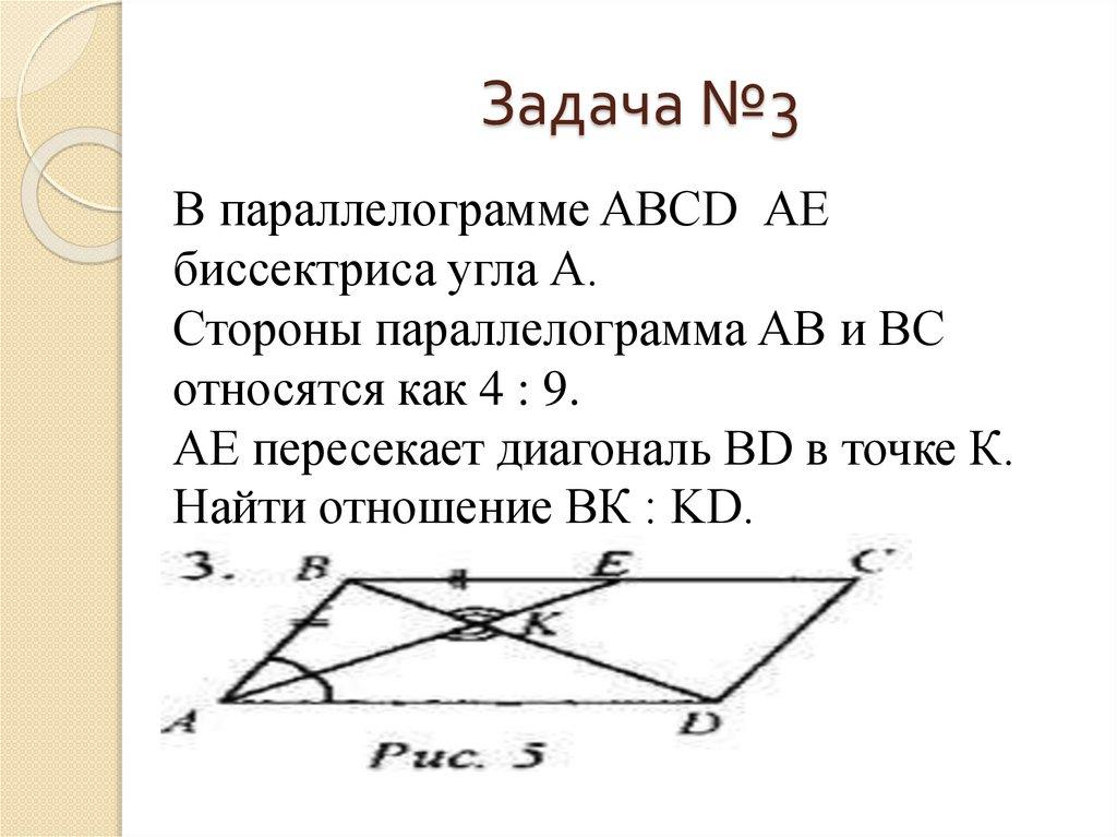 Решение задачи №3Биссектриса ∠A параллелограмма ABCD отсекает от него