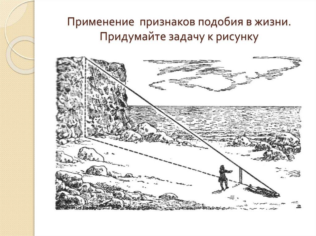Применение признаков подобия в жизни.Придумайте задачу к рисунку