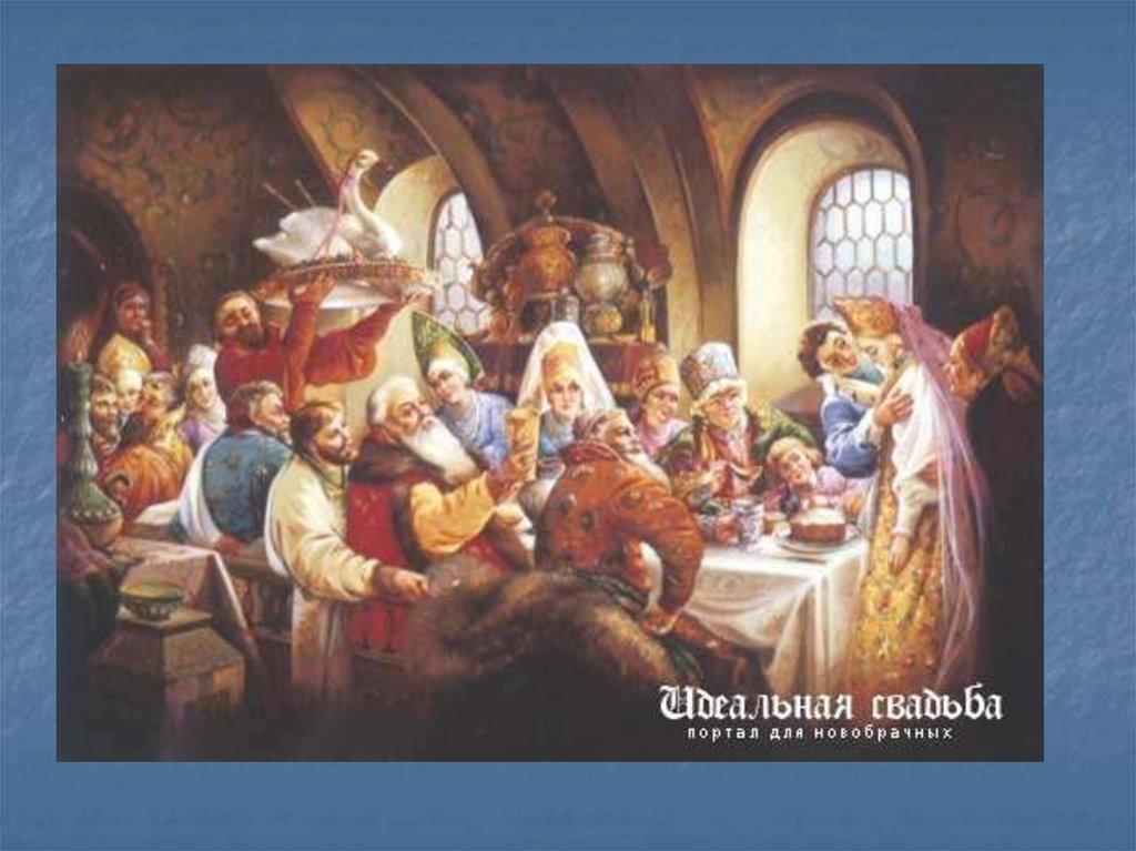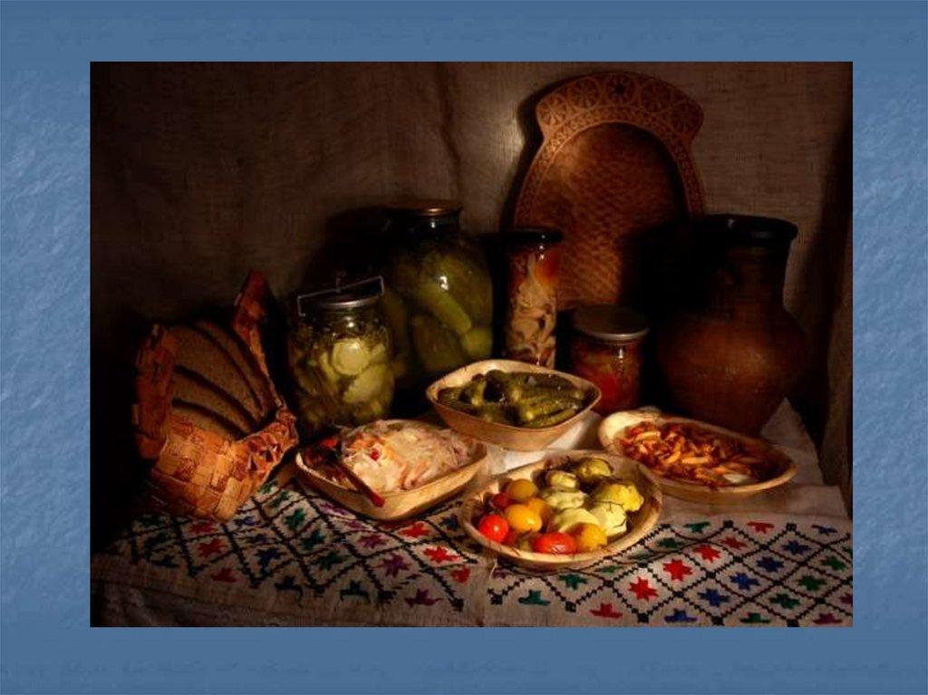 яствами (каша, щи, рыба, дичь, рыба, ягоды, мед)…