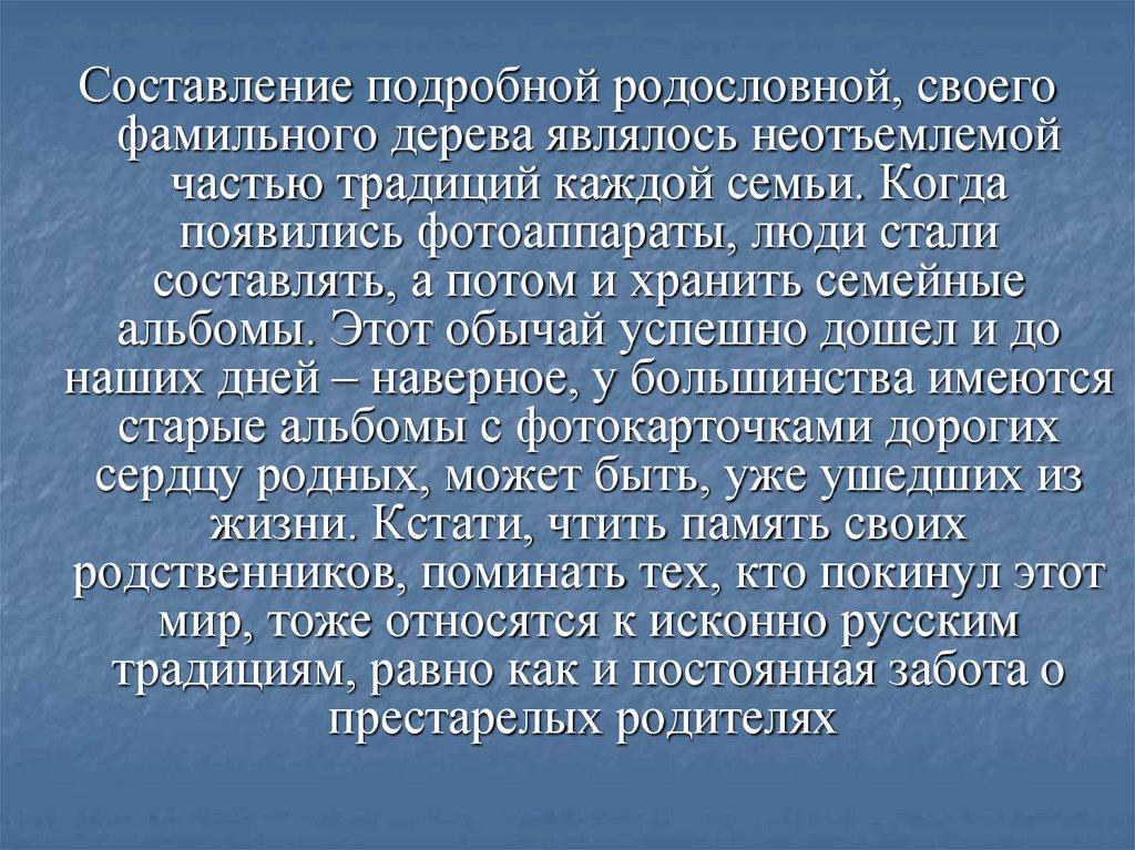 Составление подробной родословной, своегофамильного дерева являлось неотъемлемой