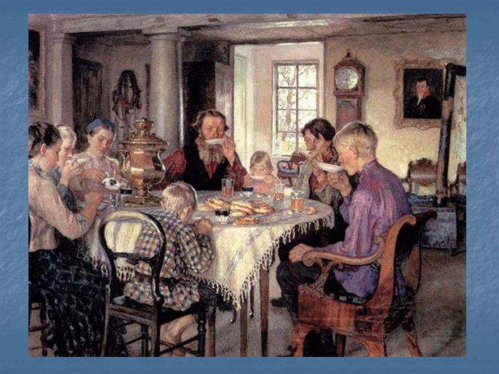 затем выходила хозяйка, кланялась всем в пояс, а гости