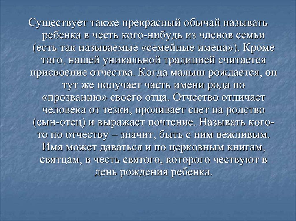 Существует также прекрасный обычай называтьребенка в честь кого-нибудь из членов семьи