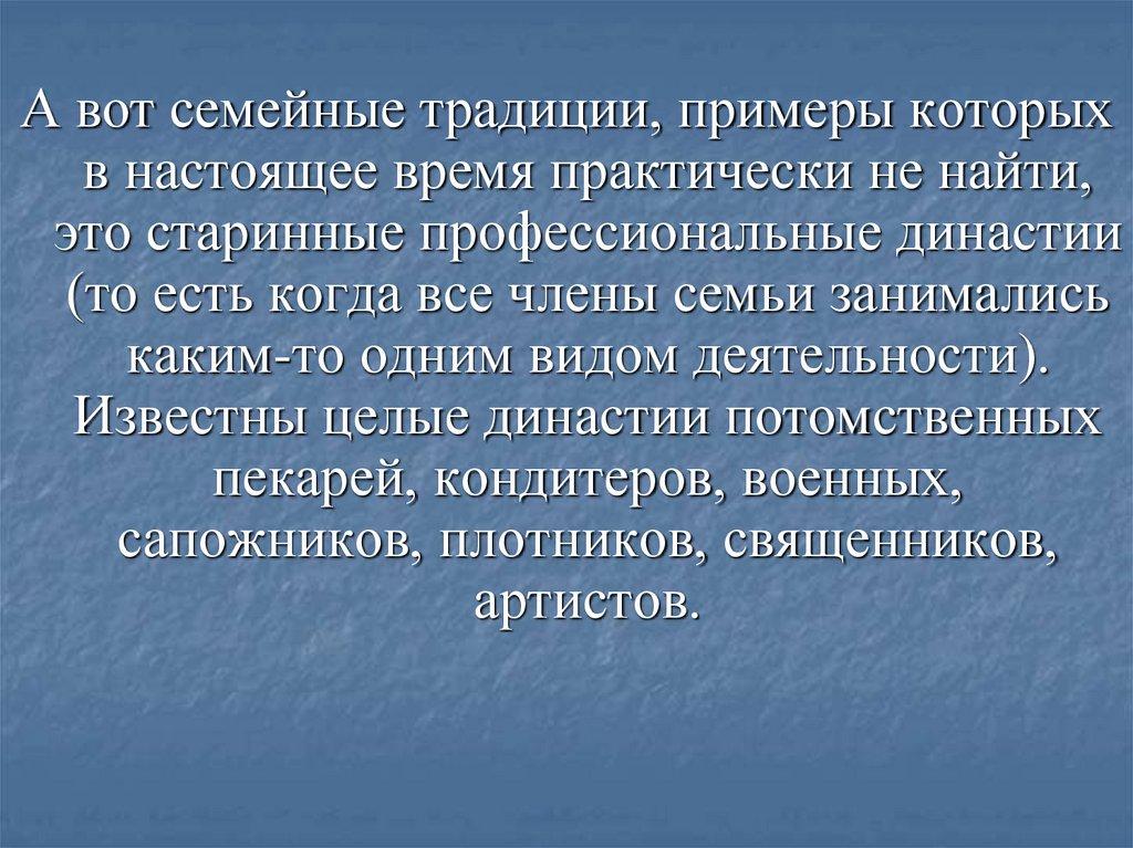 А вот семейные традиции, примеры которыхв настоящее время практически не найти,