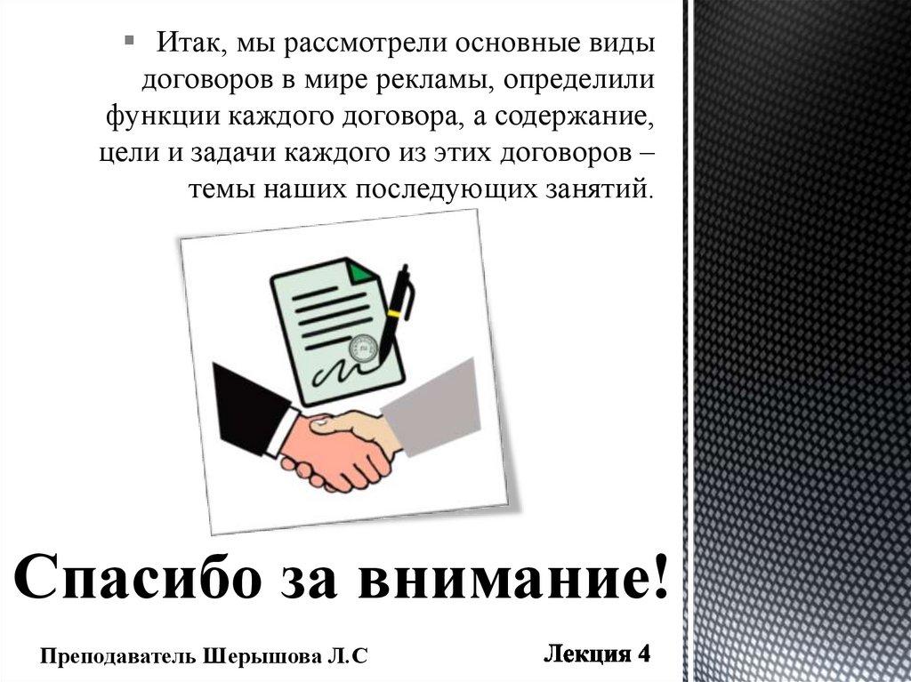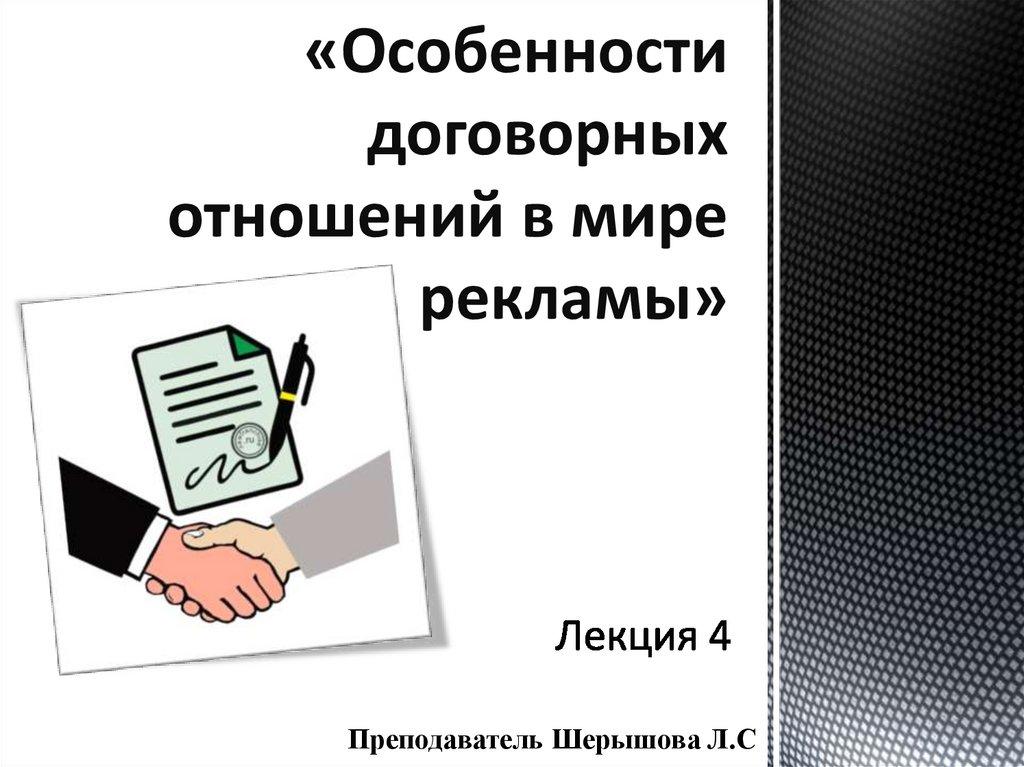 Особенности договорных отношений в мире рекламы. Лекция 4