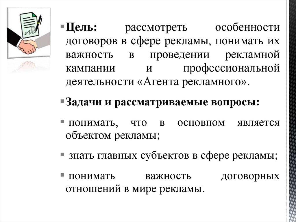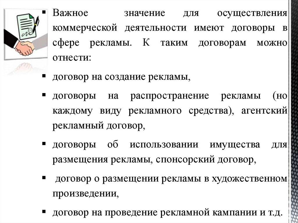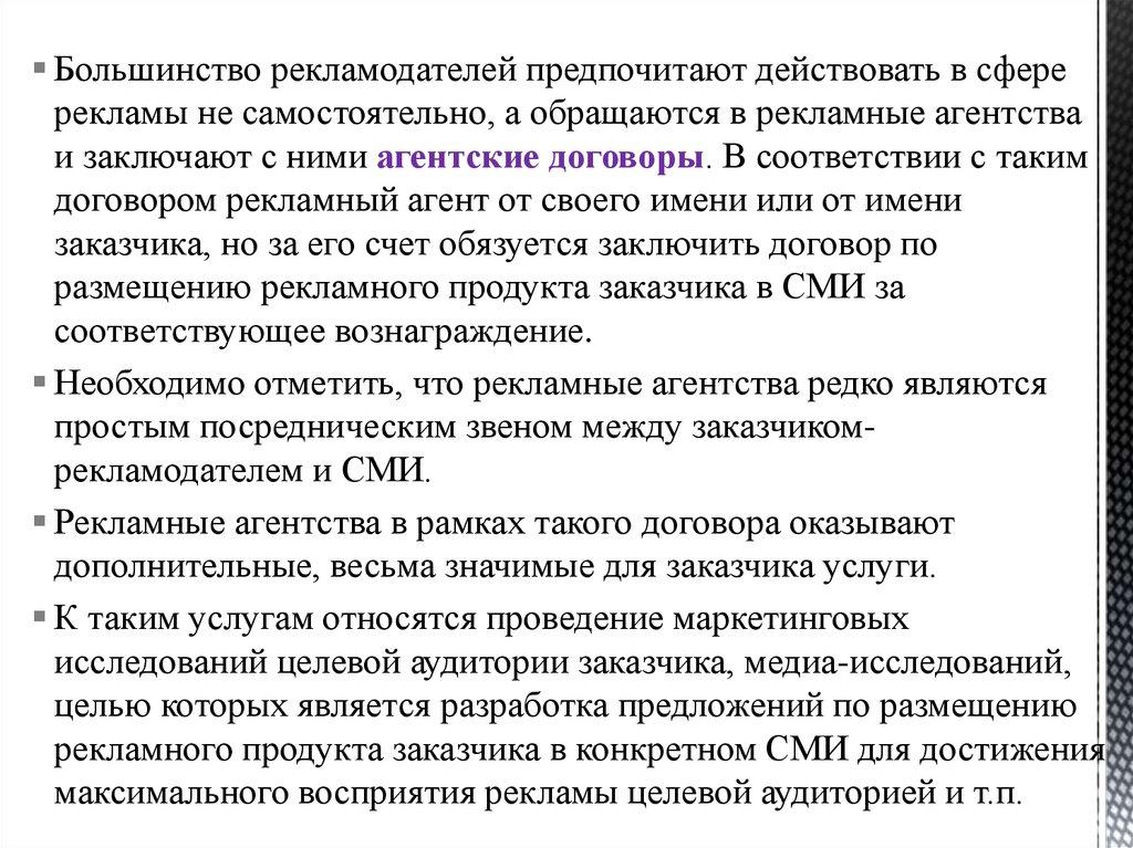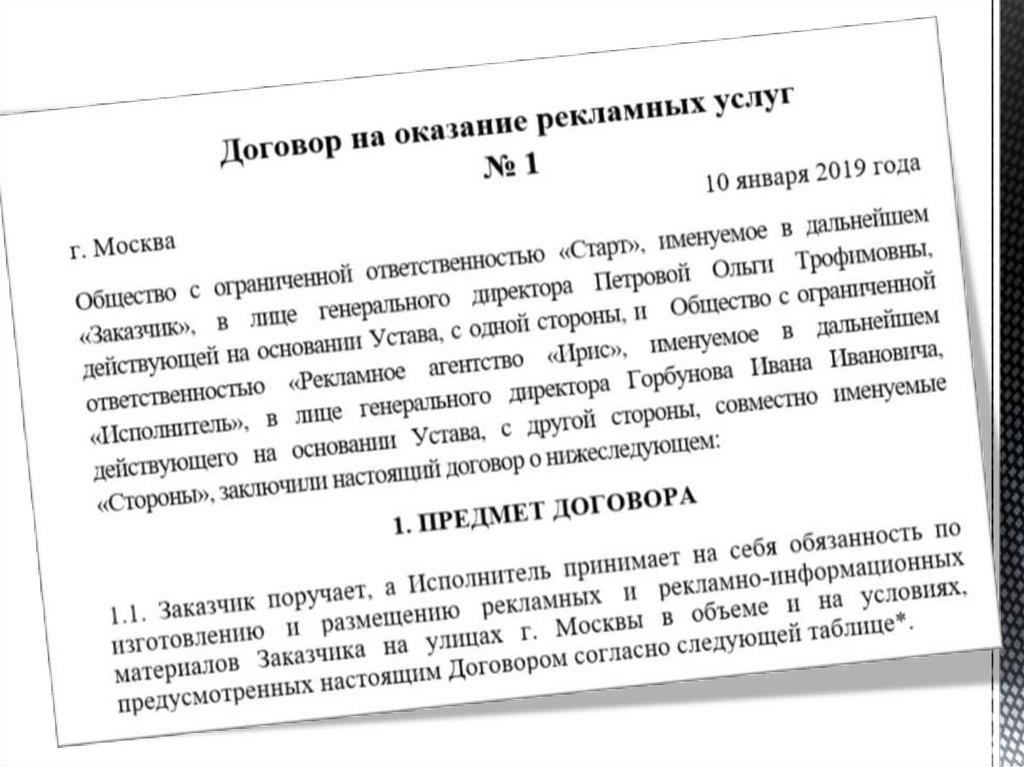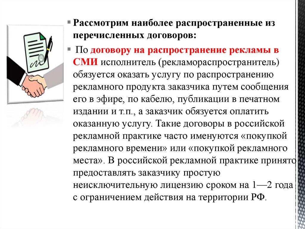 договоров в сфере рекламы, понимать их