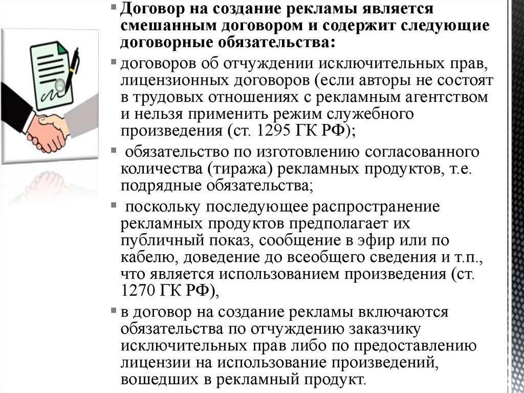 сфере рекламы. К таким договорам можно