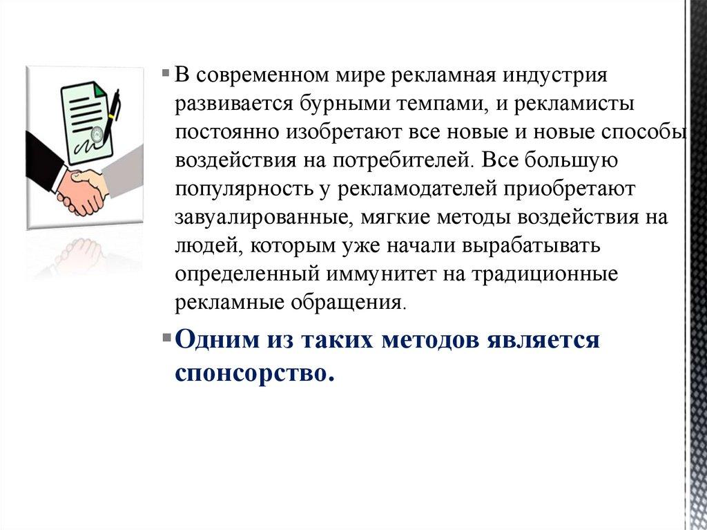 спонсируемый обязуется оказать рекламную услугу спонсору.