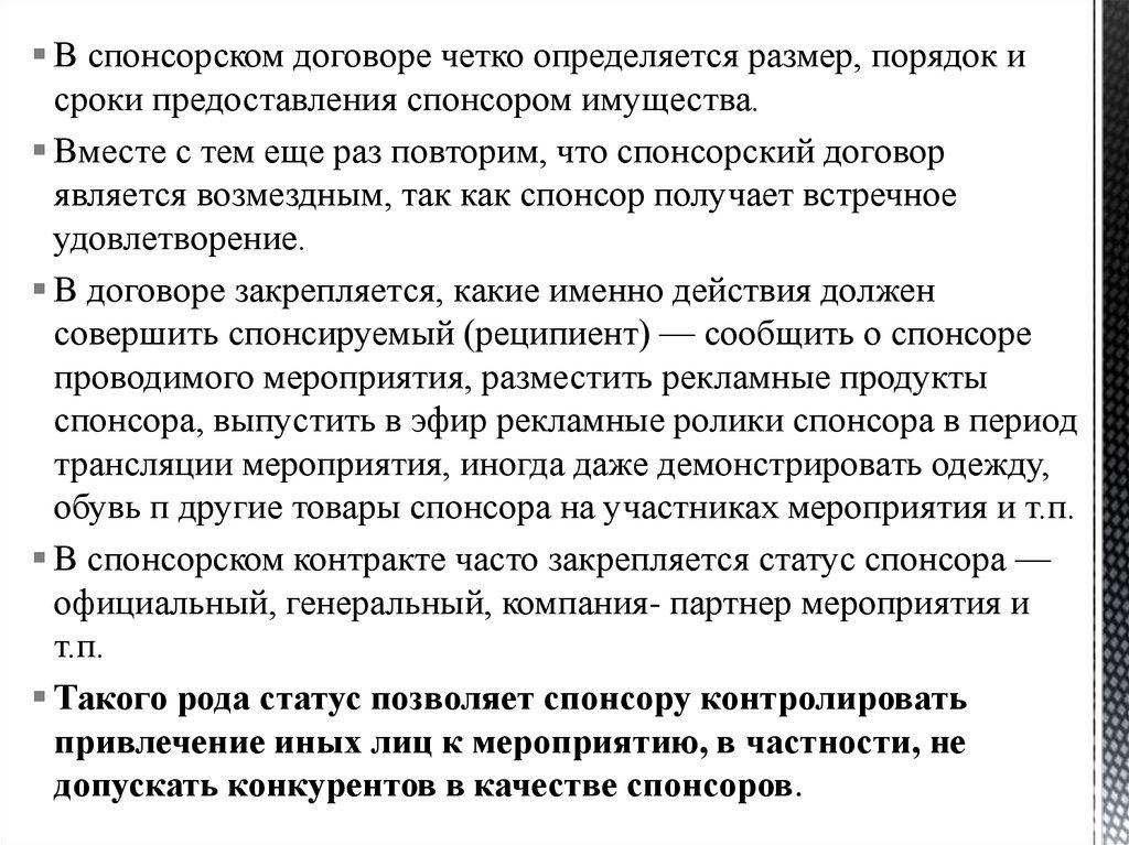 Вместе с тем еще раз повторим, что спонсорский договор