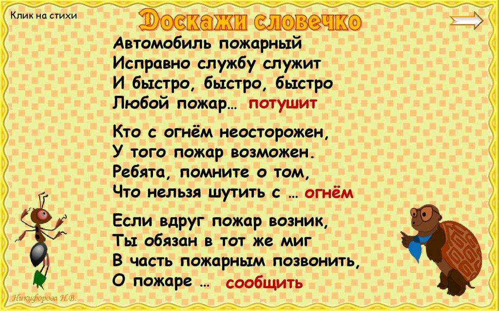 Несколько минут промчится К вам пожарная примчится.
