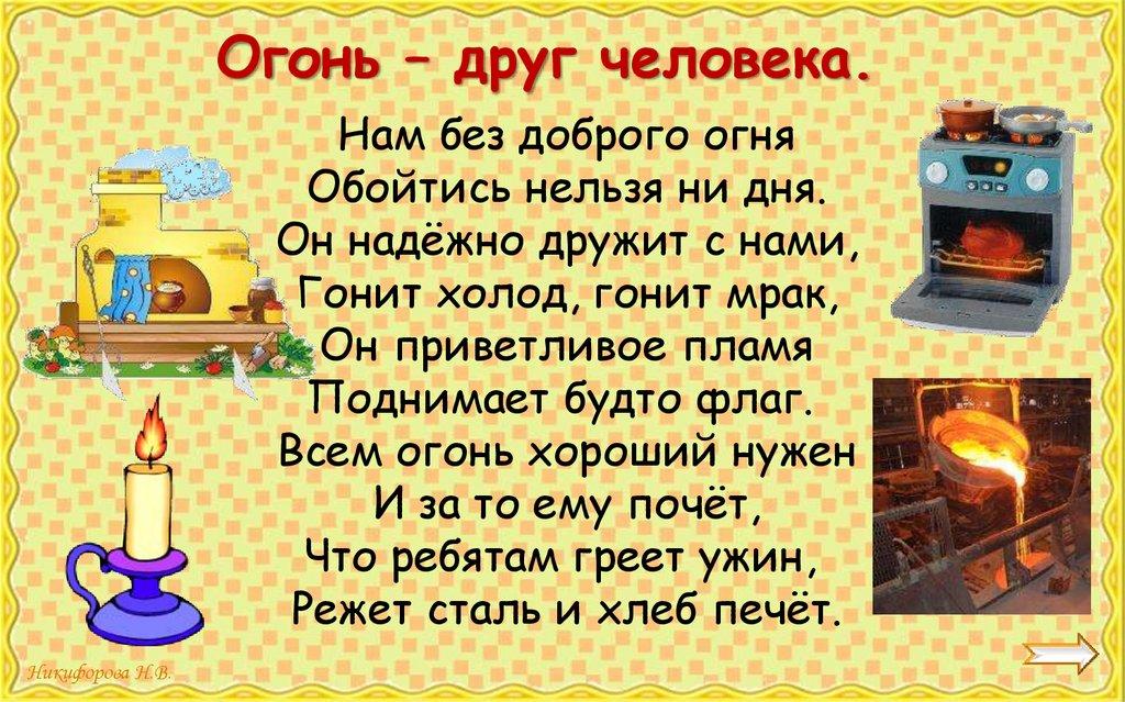 Огонь – друг человека.Нам без доброго огня