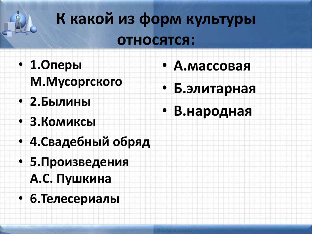 4. Формы культурыФОРМЫ КУЛЬТУРЫ