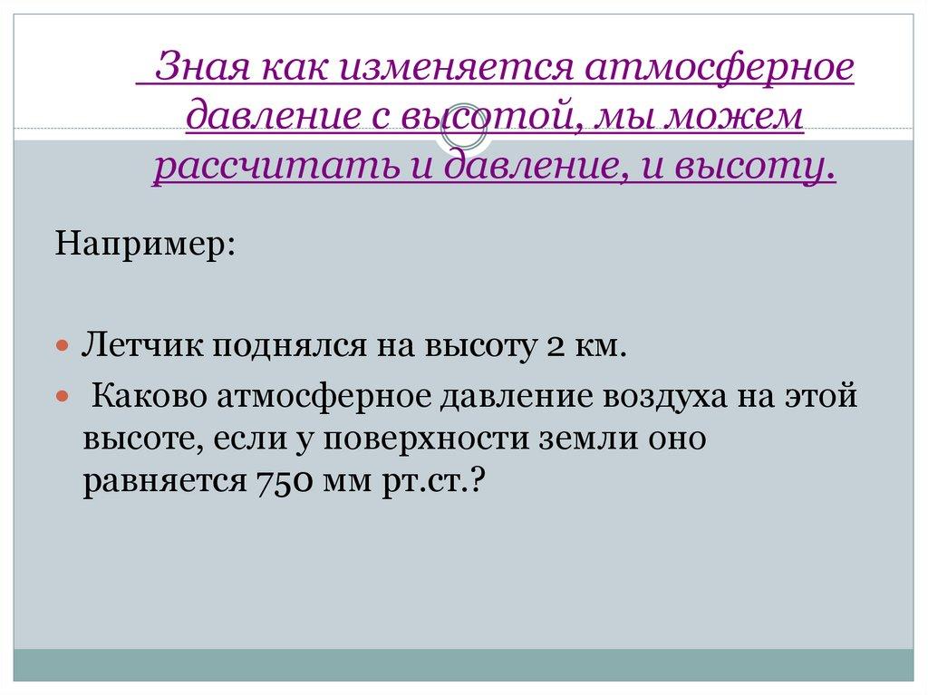 Зная как изменяется атмосферноедавление с высотой, мы можем