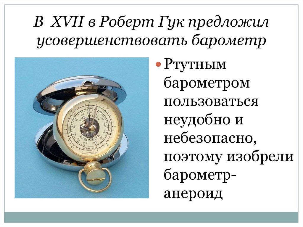 В XVII в Роберт Гук предложилусовершенствовать барометр