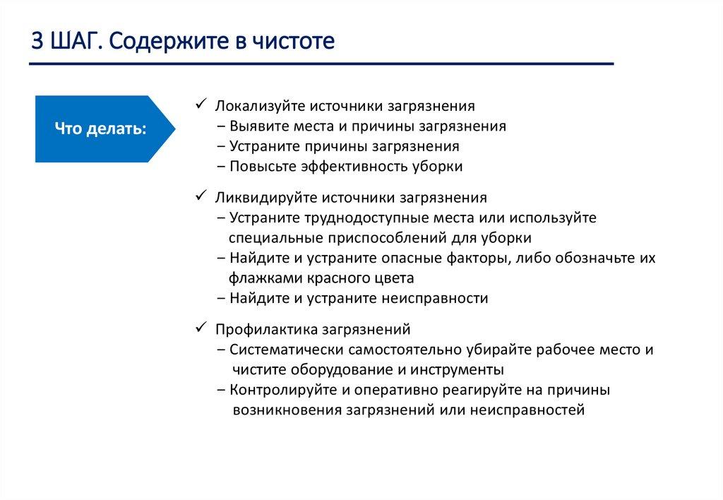 3 ШАГ. Содержите в чистотеЦЕЛЬ: поддержание рабочего места в чистоте, в исправном,