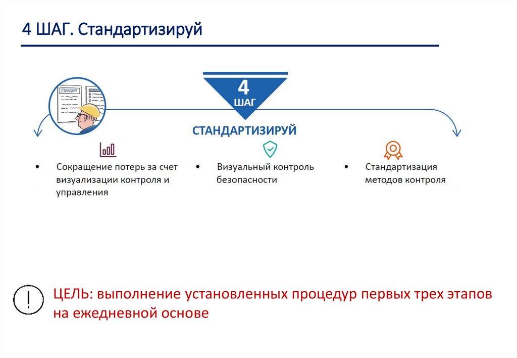 4 ШАГ. СтандартизируйЦЕЛЬ: выполнение установленных процедур первых трех этапов
