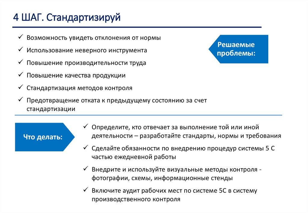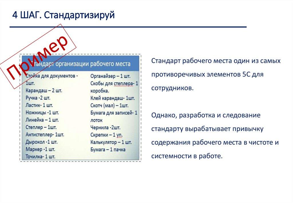 4 ШАГ. СтандартизируйСтандарт рабочего места один из самых