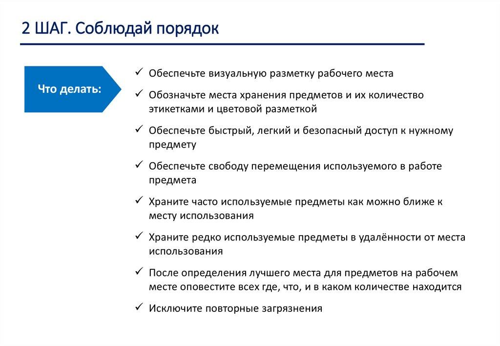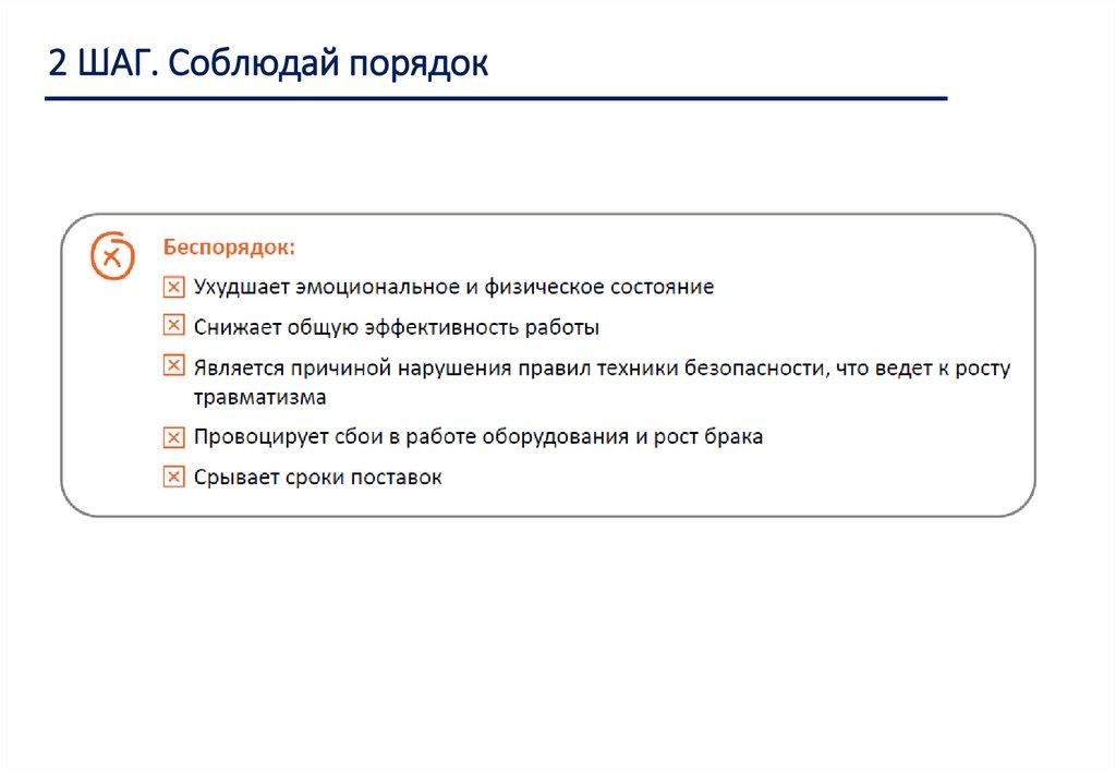 2 ШАГ. Соблюдай порядокЦЕЛЬ: рациональное расположение или организация хранения необходимых