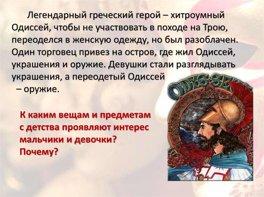 Легендарный греческий герой – хитроумныйОдиссей, чтобы не участвовать в походе на Трою,