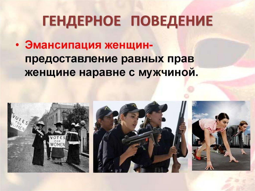 ГЕНДЕРНОЕ ПОВЕДЕНИЕ• Эмансипация женщинпредоставление равных прав