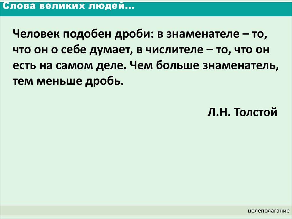 Слова великих людей…Человек подобен дроби: в знаменателе – то,