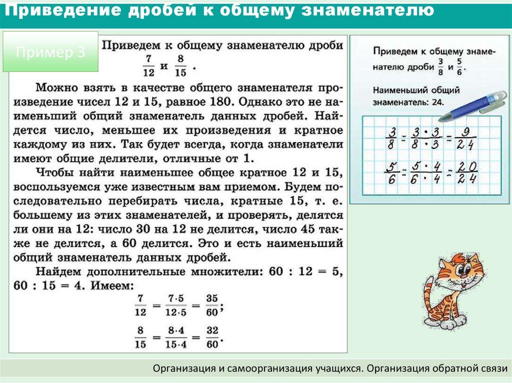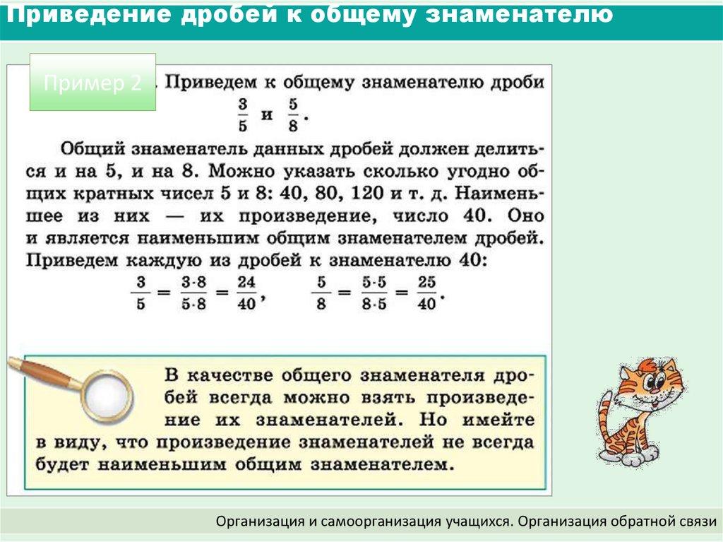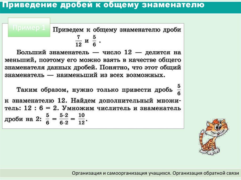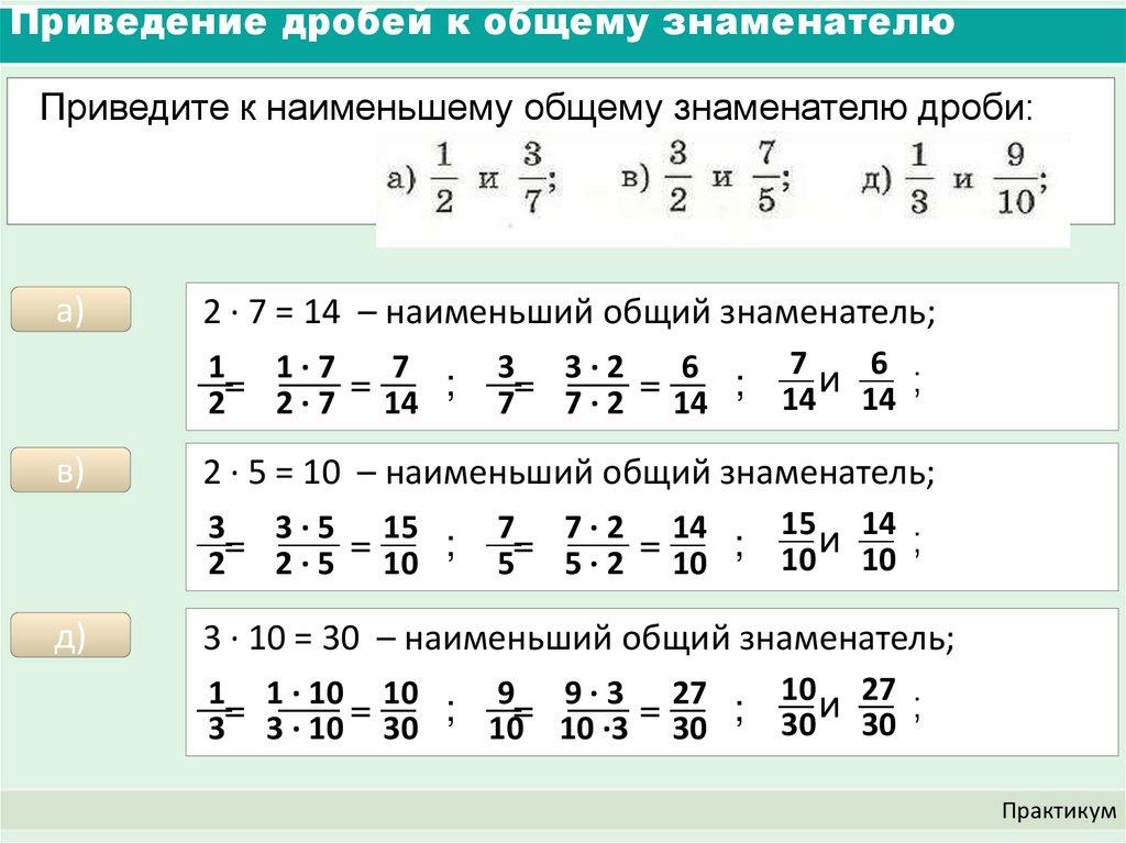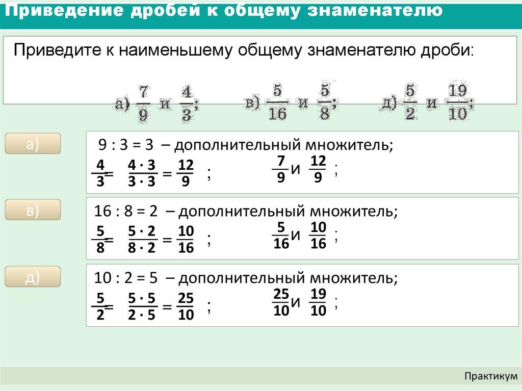 Приведение дробей к общему знаменателю (5 класс)