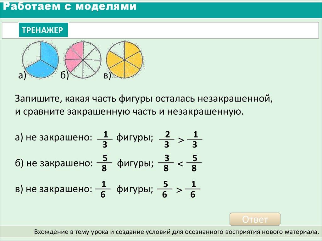Работаем с моделямиСократите дроби: