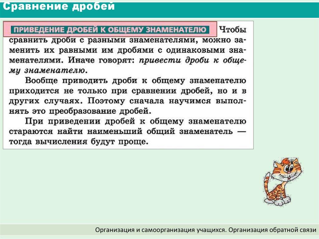 Сравнение дробейОрганизация и самоорганизация учащихся. Организация обратной связи