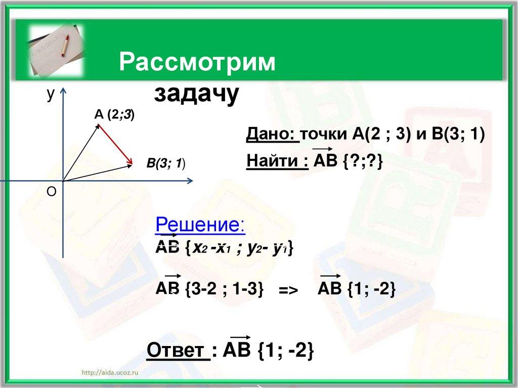 Дано: точки А(2 ; 3) и B(3; 1)