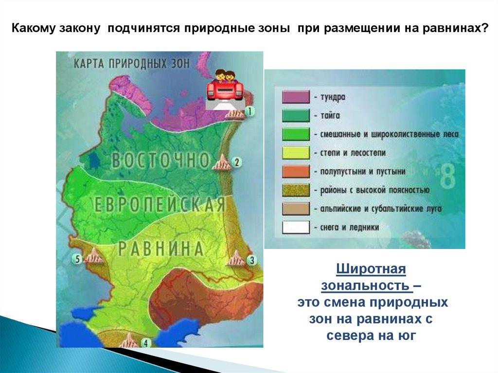 Какому закону подчинятся природные зоны при размещении на равнинах?Широтная
