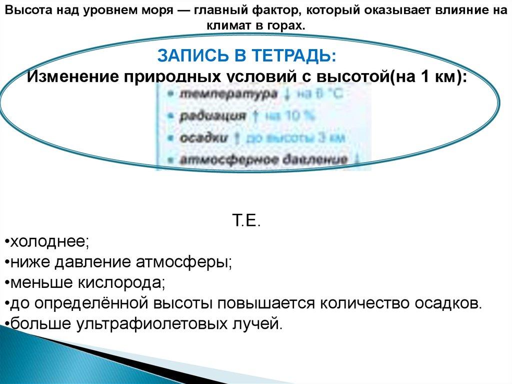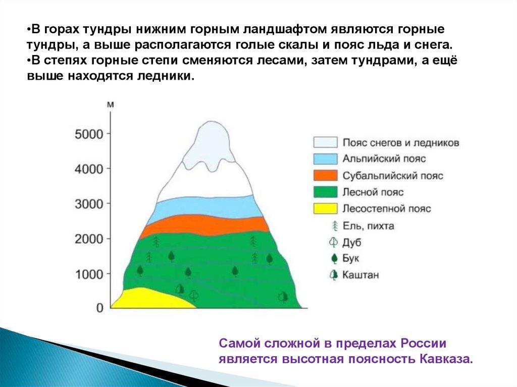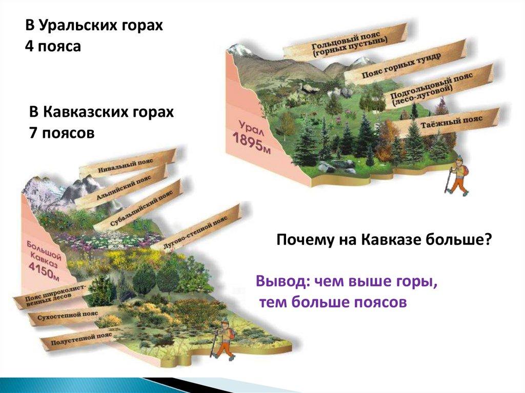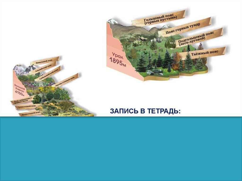 ЗАПИСЬ В ТЕТРАДЬ:Чем выше горы, тем больше высотных поясов