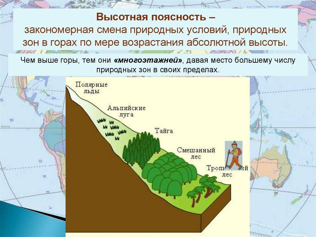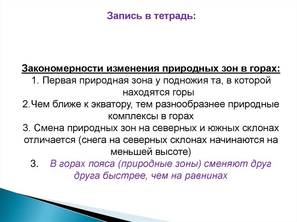 Запись в тетрадь:Закономерности изменения природных зон в горах:
