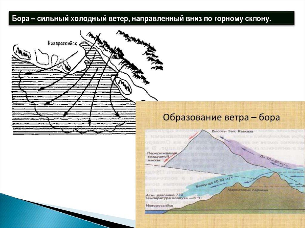 Бора – сильный холодный ветер, направленный вниз по горному склону.20.