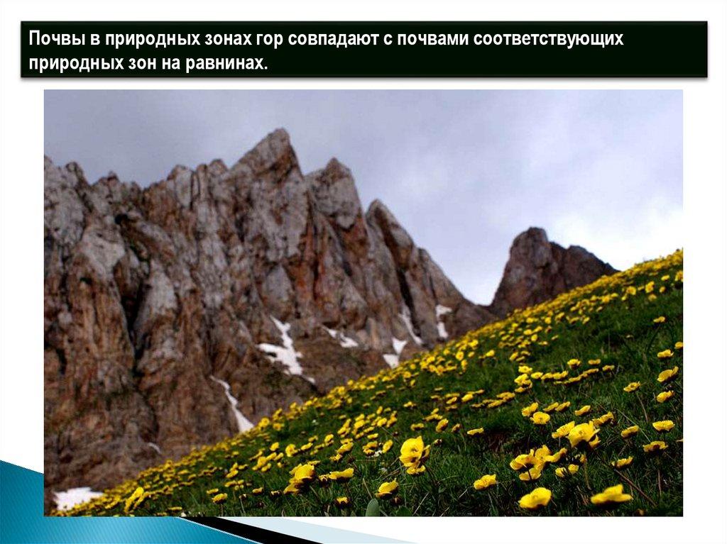 Почвы в природных зонах гор совпадают с почвами соответствующихприродных зон на равнинах.