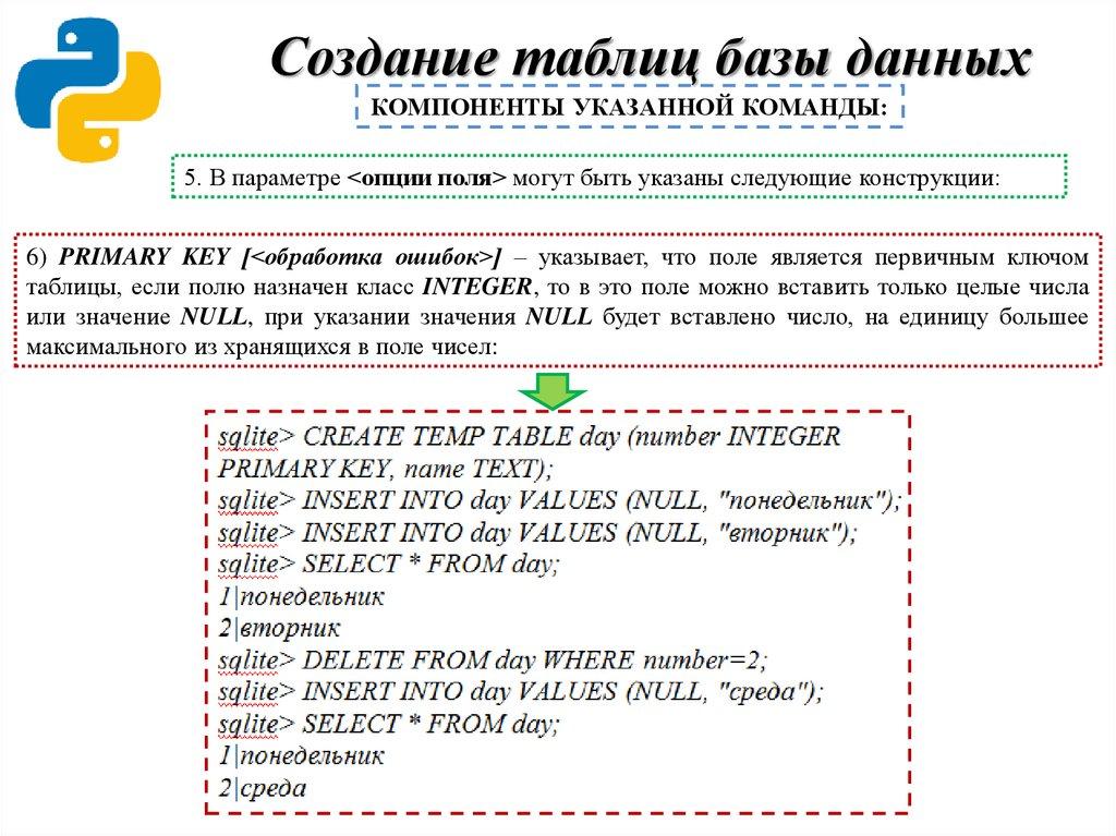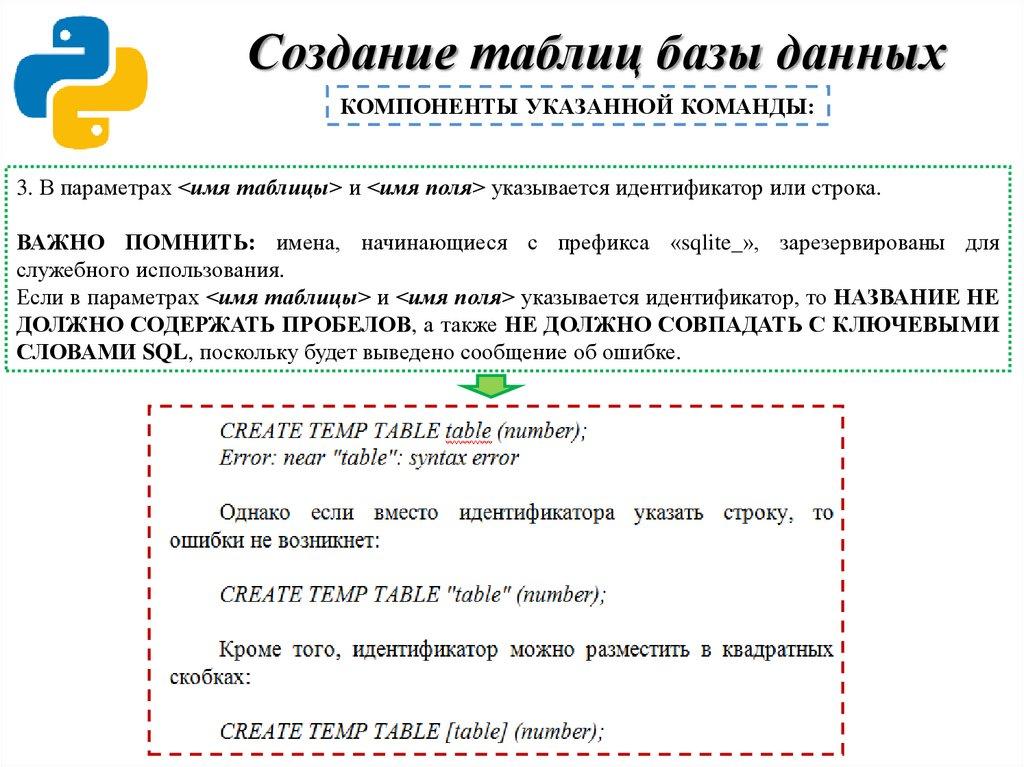 ВАЖНО ПОМНИТЬ: имена, начинающиеся с префикса «sqlite_», зарезервированы для