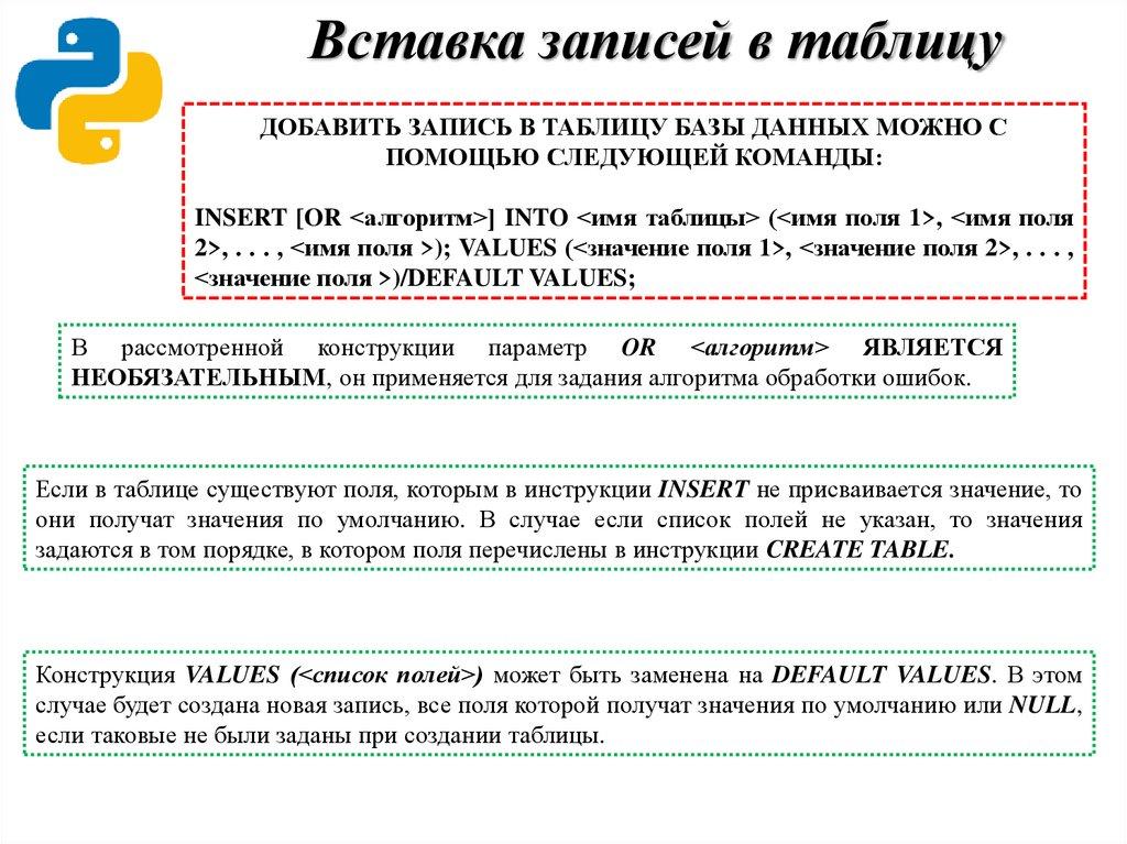 и в инструкции INSERT, структура записи которой имеет следующий вид: