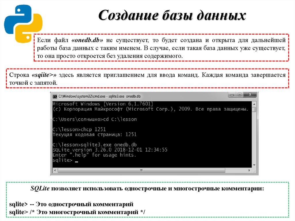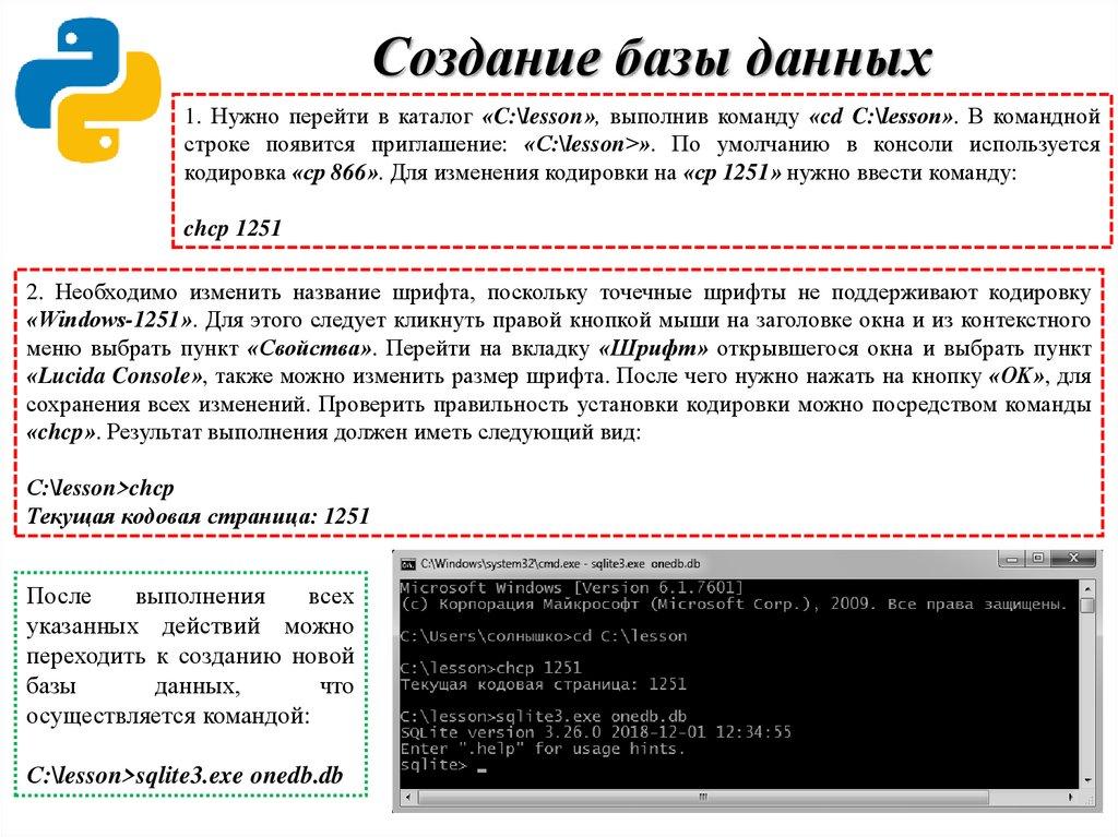 Создание базы данных1. Нужно перейти в каталог «C:\lesson», выполнив команду «cd C:\lesson». В командной