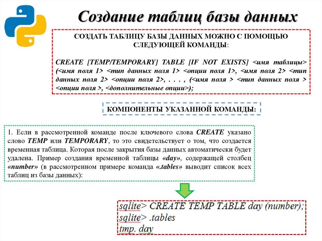 CREATE [TEMP/TEMPORARY] TABLE [IF NOT EXISTS] <имя таблицы>