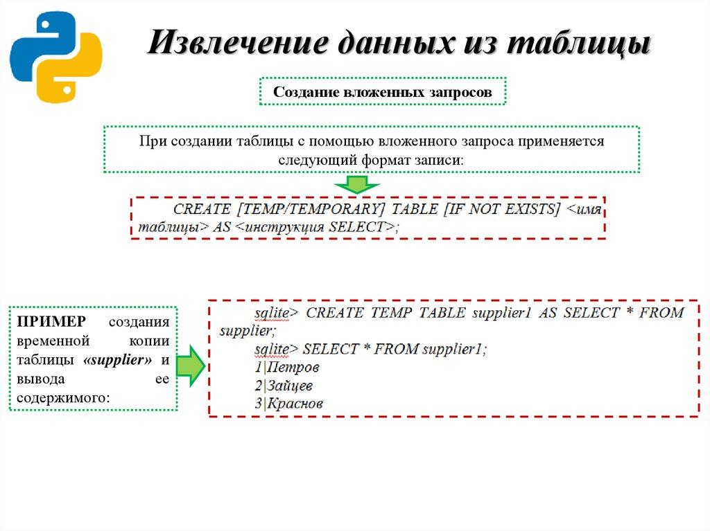 удалена. Пример создания временной таблицы «day», содержащей столбец