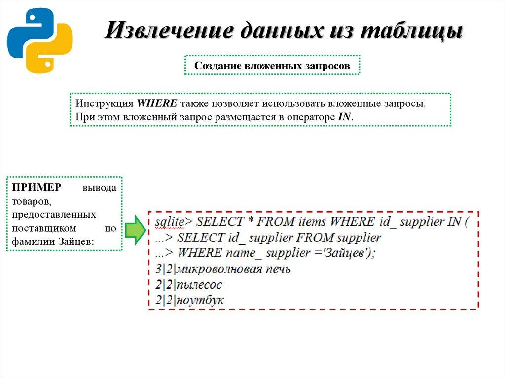 Инструкция WHERE также позволяет использовать вложенные запросы.
