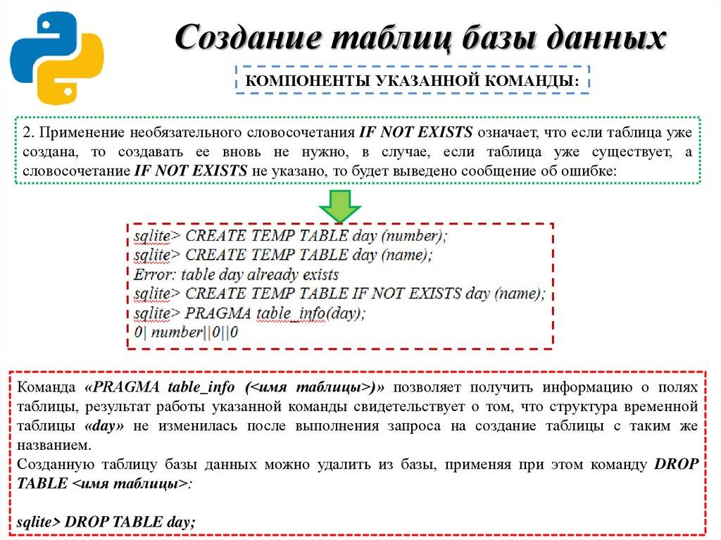 2. Применение необязательного словосочетания IF NOT EXISTS означает, что если таблица уже
